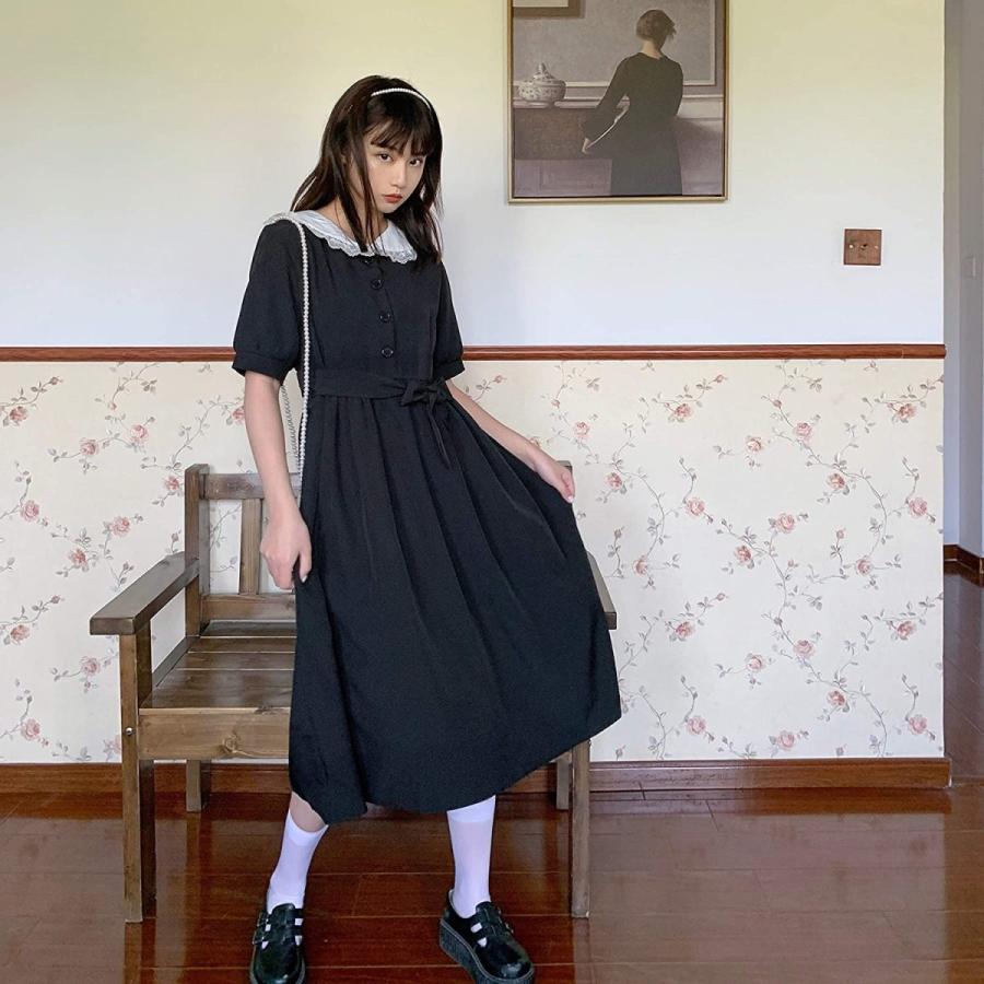 Amazon Co Jp Porin ワンピース レディース 量産型 服 かわいい ロリータ ゴスロリ 夏 ブラック 半袖 ファッション